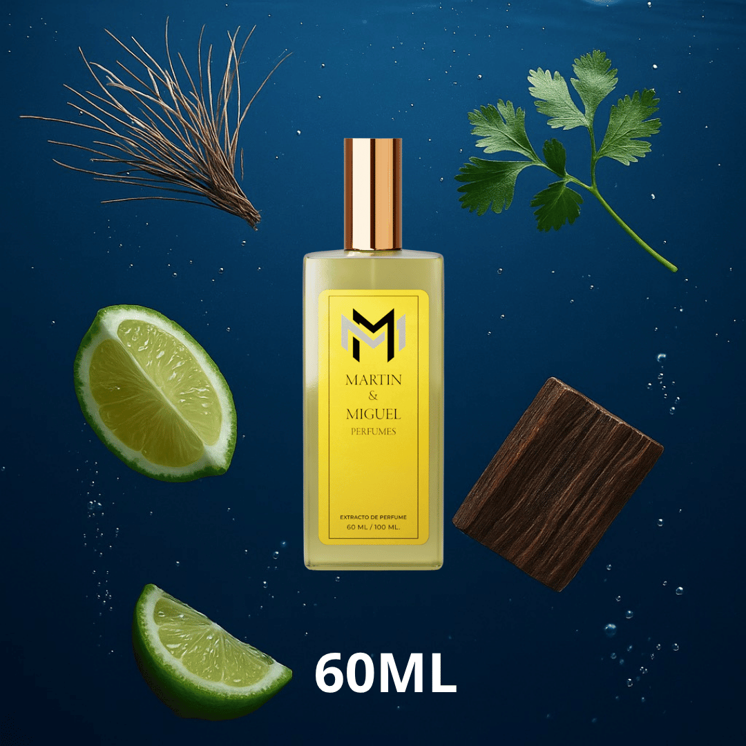 Esencia Azul es una fragancia sofisticada, fresca y profundamente masculina. Abre con un estallido cítrico vibrante de limón y bergamota, que se mezcla con toques aromáticos de menta y cilantro, creando una sensación limpia, moderna y enérgica.